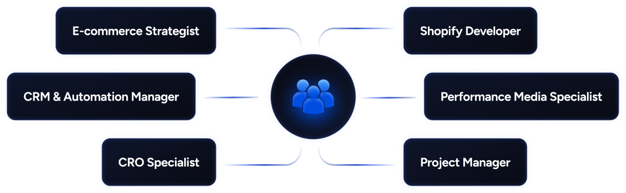 A dedicated e-commerce growth pod combining strategy, dev, paid media, CRO, and CRM — integrated as your remote growth department.